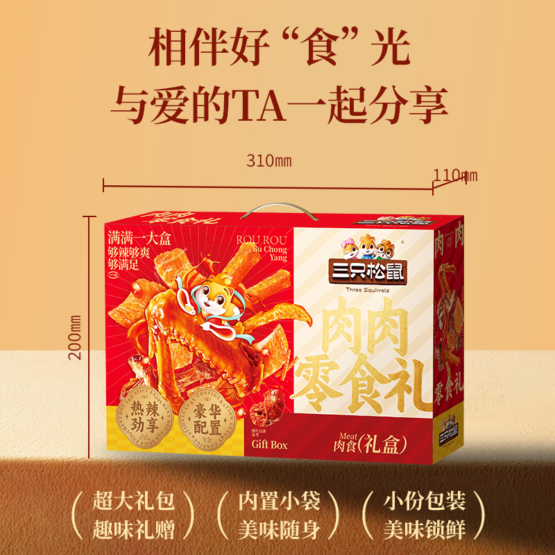商品简介【惠警超市】:三只松鼠肉肉零食礼574g (30袋)