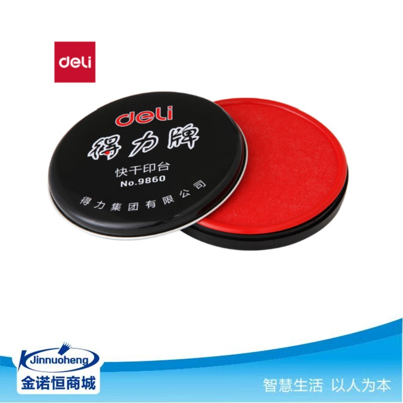 • 得力圆形快干印台印泥 财务办公用品 红色9860