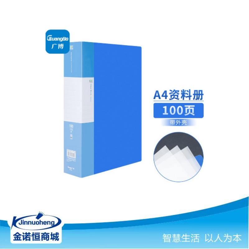 广博A4资料册活页文件夹插页袋透明塑料档案实A3181 100页(有外壳)