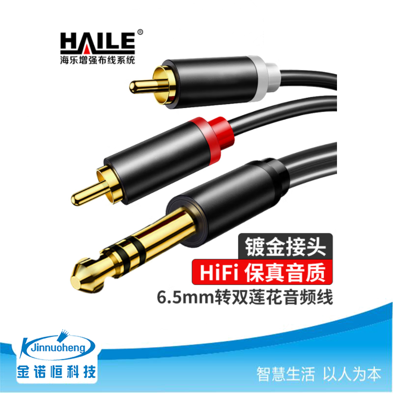 海乐双莲花音频线 6.35mm公转2RCA红白公头1.5米